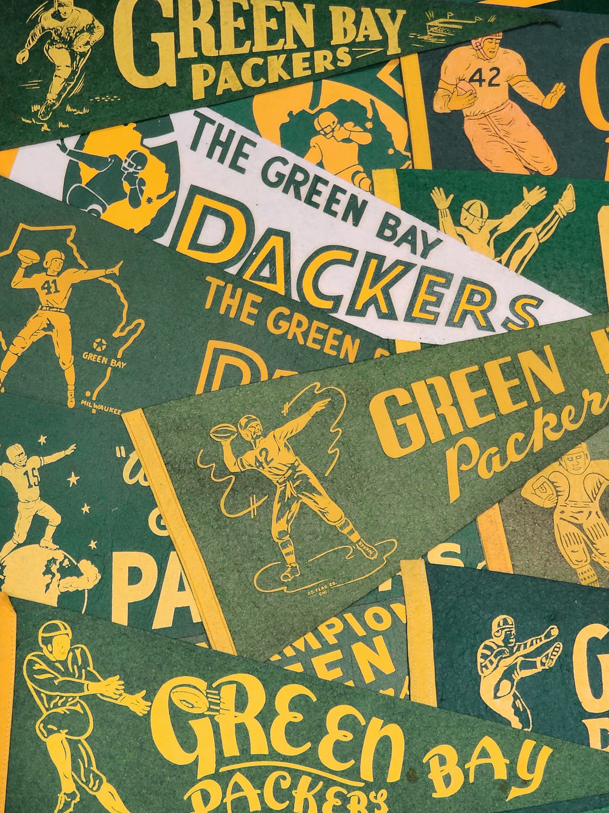 Felt Collectibles features our vintage sports pennant collection showcased through custom artwork. We collect, collage, photo, then put to print. Each print is a look at our collection and some of the most valuable sports pennants in the world.